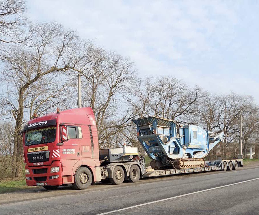Гусеничная щековая дробилка, транспортировкой которой из Европы занималась компания ТАД, относится к крупногабаритному грузу, требующему соответствующих разрешений на перевозку в соответствии с законодательством стран-транзитов.
